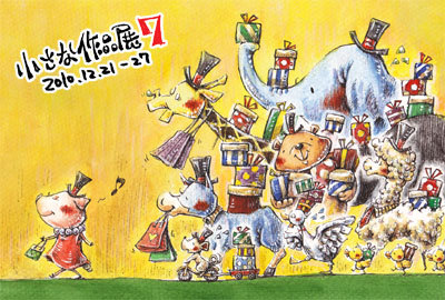 小さな作品展7 おしゃれ 創作活動 2010年12月27日 [小さな作品展7 おしゃれ]に参加します!おしゃれをテーマに色々なアプローチでおしゃれを表現。何人もの作家さんが集まって出店の大勢展示。私は2点とポストカードを出します。*****会場 / 高円寺ギャラリーR ※地図は畳んだ所にあります。期間 / 2010年12月21日(火)〜27日(月)時間 / 13:00〜19:00時間の注意※最終日のみ16時まで。※初日は搬入しながら開催のため、作品が揃ってない場合があります。※25日(土)は17:00より参加作家のみの交流会のため一般入場は出来ません。*****展示HP→小さな作品展7展示にはイラストだけでなく、冊子コーナーと称して一部の参加作家さんの作る「本」も展示されています。mixiで小さな作品展コミュもあるのでチェックしてみてくださいね♪ イラスト一覧へ戻るPR