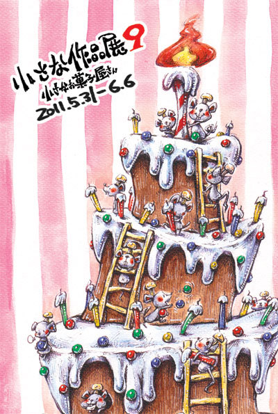 小さな作品展9 創作活動 2011年06月06日 無事終了しました!まとめはコチラ→グウタラ日記*****[小さな作品展9 小さなお菓子屋さん]に参加します!スイーツをテーマに沢山の作家さんが参加します。色んな形のイラストに出会えます。テーマごとに作家さんの色が出て楽しい展示。私は1点とポストカードを出します。*****会場 / 高円寺ギャラリーR ※地図は畳んだ所にあります。期間 / 2011年 仮オープン 5/31(火) 本オープン 6月1日(水)〜6日(月)時間 / 13:00〜19:00時間の注意※最終日のみ16時まで。※5/31は搬入しつつオープン。のため、作品が揃ってない場合があります。※4日(土)は17:00より参加作家のみの交流会のため一般入場は出来ません。*****参加者や明細はHPへ!→小さな作品展9展示にはイラストだけでなく、グッズコーナーと称して一部の参加作家さんの作品もあります。mixiで小さな作品展コミュもあるのでチェックしてみてくださいね♪ 地図これ↓ イラスト一覧へ戻るPR