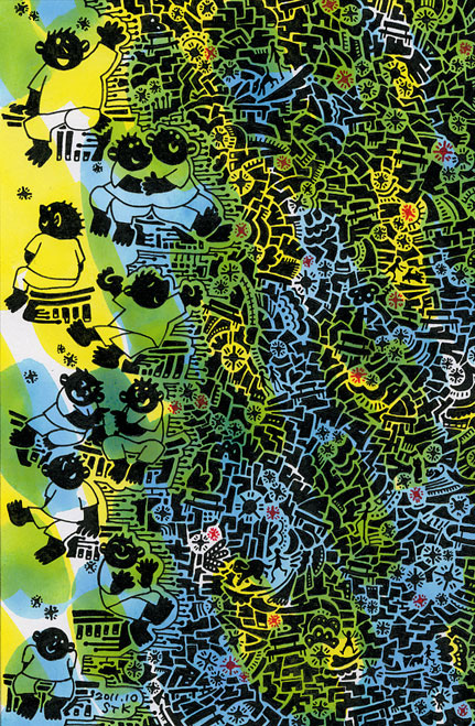アクリル、ペン。