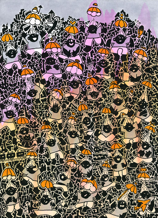 水彩、ペン、コピック。