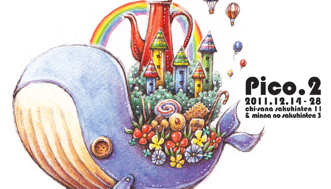 pico.展(前半:小さな作品展11) 創作活動 2011年12月21日 「pico.展」前半の部:小さな作品展11 に、参加します。「空想」をテーマにして90名ほどのアーティストが参加してます。参加者はpico.展HPでチェックしてください^^!写真ぐらいの小さなイラストにポストカード、同時に「ホントに小さな作品展」をやってます。ちっさ!って思うような小さなイラストが並んでます。私は作品2点と、ホントに小さな作品2点、ポストカードを置いてもらってます。****場所:ギャラリーR(高円寺)期間:12月14日(水)~12月21日(水)時間:13:00~19:00※最終日のみ16時まで※17日(土)は17時から参加作家限定の交流会を行うため入場出来ません。****12月22日(木)~12月28日(水)は「小さな作品展」の一部の作家21名でのグループ展!※28日(水)にはクロージングパーティーを開催します。 イラスト一覧へ戻るPR