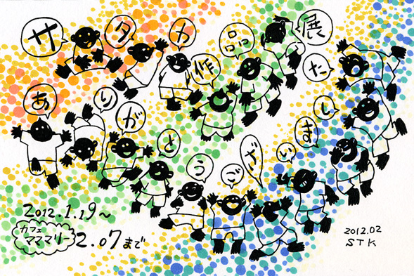 作品展ありがとうございました!のハガキ アナログ 2012年02月15日 ペン、コピック。1月19日から2月7日までの「サタカ作品展」に来てくれた方に送りました。住所知らない方にはココで見てもらえると嬉しいです。ありがとうの気持ちを込めて!ありがとうございました^^! イラスト一覧へ戻るPR