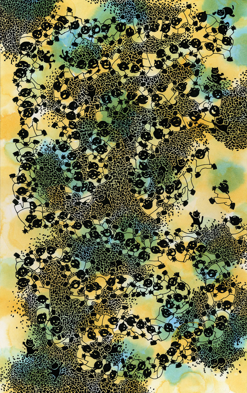 アクリル、ペン。