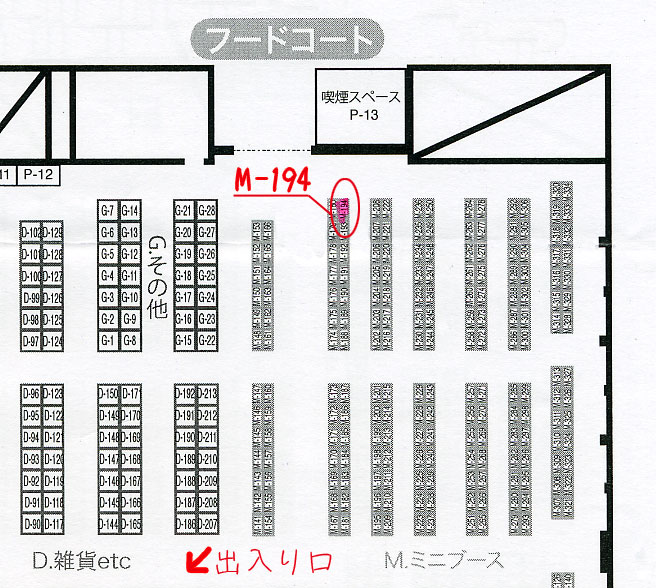 クリエーターズマーケット vol.27 創作活動 2012年12月02日 無事終了しました!ありがとうございました◎*****クリエーターズマーケットvol.27に参加します!日時:12/1(土)・2(日)場所:ポートメッセ名古屋時間:11時から18時まで。ブース:M-194 「サタカ」ポストカードと、イラスト本。あと、出来たら、名刺をちゃんとしたの作って持って行きたいです。▼ スペースの場所今回は一人参加です。緊張する〜。一番恥じっこの、フードコート側と、分かりやすい場所です^^!是非、遊びにきて下さいね◎ イラスト一覧へ戻るPR