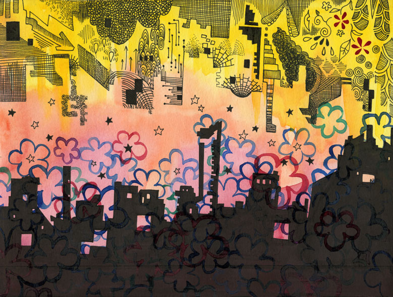 水彩、ピグマペン、コピック。