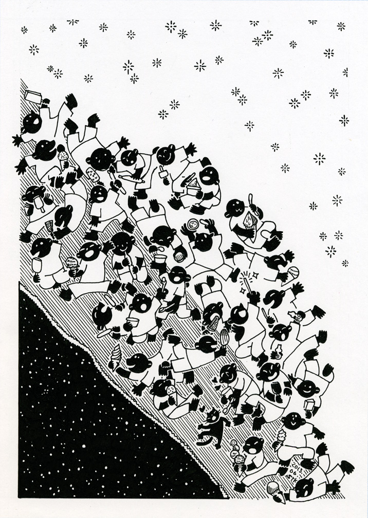 アイス アナログ 2013年08月27日 ペン。中学の時のサークル「梅味あんみつ」のメンバーが集まってイラスト本作りました。メンバーは、朝井健司、サタカ、そねこ、まりこ、まゆころの5人です。帰り道に買って帰ろう。 イラスト一覧へ戻るPR