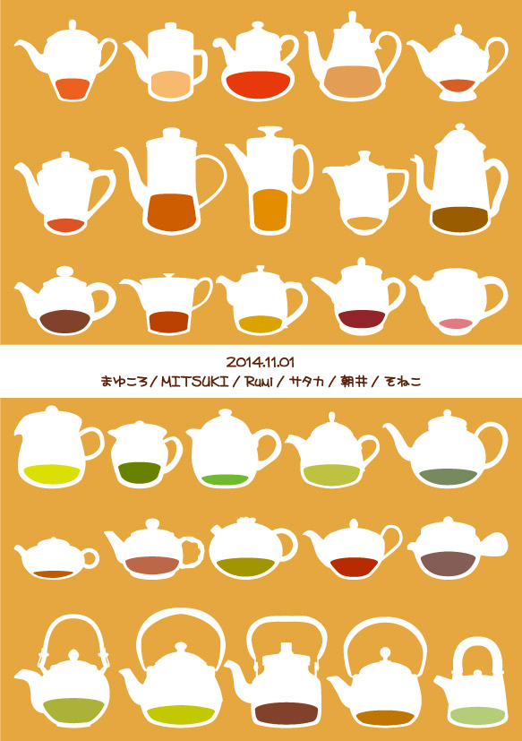 梅あん-秋本 創作活動 2014年11月03日 タイトル「そろそろお茶にしませんか?」36ページ(表紙カラー/本文モノクロ)発光は、2014.11.01お茶をテーマに、ほうじ茶、ハーブティー、紅茶、烏龍茶、どくだみ茶、緑茶と、マンガとイラストを載せています。それぞれの味を楽しんで下さい◎ 参加は、pixiv / まゆころMitsukiRumipixiv / サタカ(HP)pixiv / 朝井健司pixiv / そねこ イラスト一覧へ戻るPR