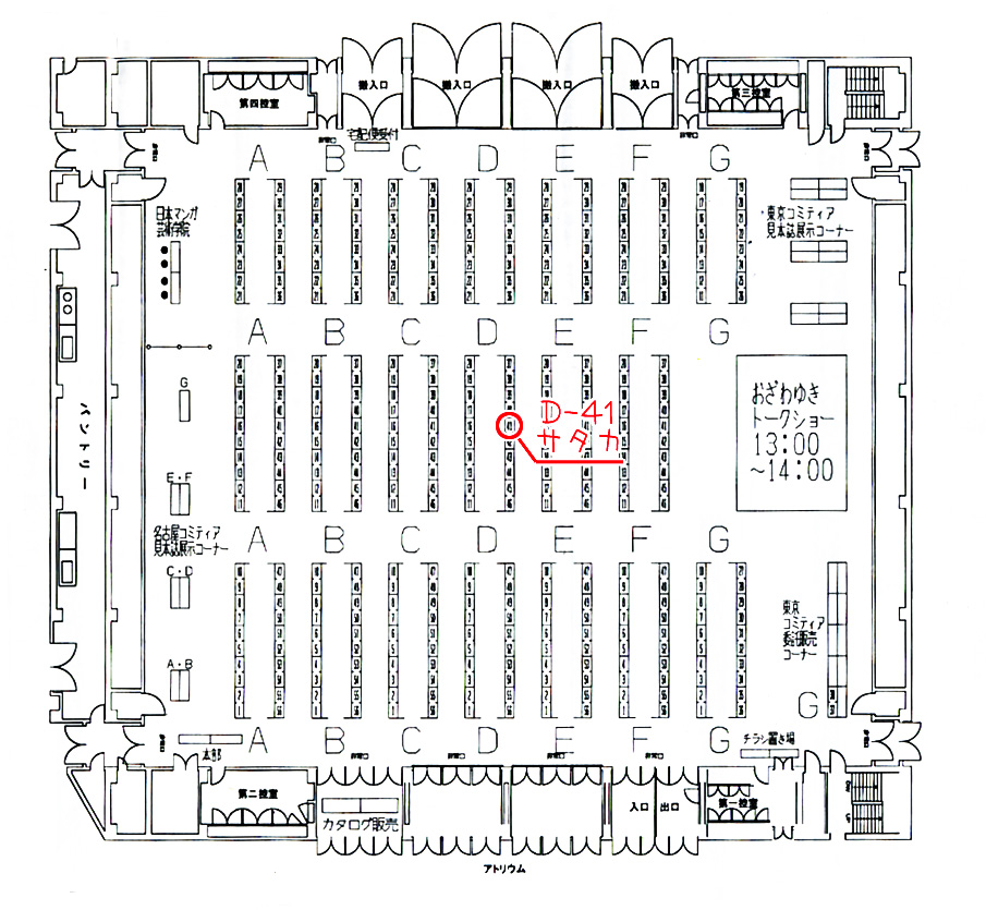 名古屋コミティア47 創作活動 2015年09月27日 無事終了しました!ありがとうございました!-----「名古屋コミティア47」に、参加します! 内 容:創作漫画同人誌展示即売会開催日:2015年9月27日時 間:11:00〜15:00会 場:名古屋市国際会議場 イベントホール ・地下鉄 名港線「日比野駅」、1番出口より徒歩5分 ・地下鉄 名城線「西高蔵駅」、2番出口より徒歩5分※ 入場料として、「ティアズマガジンなごや」(カタログ/パンフレット)の購入をお願いします。スペース:D-41参加名:サタカ よろしくお願いします! イラスト一覧へ戻るPR
