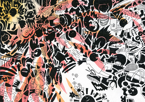 水彩、ピグマペン、コピック。