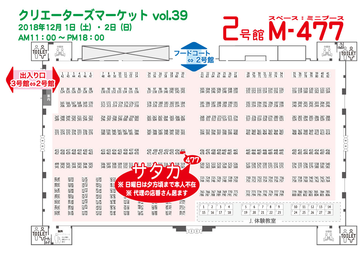 クリエーターズマーケット vol.39 創作活動 2018年12月02日 「 クリエーターズマーケット vol.39 」に、参加します。中部地区最大級のつくる人の祭典(アート、デザイン、手作り、ギャラリー、マーケット)開催日:2018年 12月1日(土)、12月2日(日) ※時 間:11:00〜18:00会 場:ポートメッセ名古屋 2号館/3号館ブース:2号館 ミニブース M-477参加名:サタカ販売物:原画、ミニイラスト、イラスト本 ※ 土日両方とも参加ですが、日曜日は、夕方ごろまで代理の店番さんがおります。なので、毎回やっているライブペイントは、土曜日のみになります。作品の販売は、変わらずやっているので、どしどし、覗きに来てくださいね!公式サイトはコチラから↓ イラスト一覧へ戻るPR