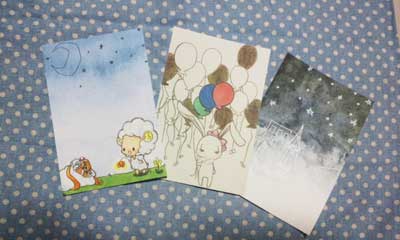 クリエーターズマーケットvol.25 創作活動 2011年12月04日 無事に終了する事が出来ました。来て下さった方、ありがとうございました。参加されてたアーティスト、クリエーターの方々お疲れさまでした。一緒に参加して下さったお二人にはホント、感謝です!****12月3日・4日と、「クリエーターズマーケット」に参加します!場所:ポートメッセ名古屋時間:11時~18時まで。出店:M-49私は、ポストカード、しおり、シールを持って行きます。ポストカードは新作もあります^^!-- 一緒に参加される方 --「Flying APPLE」のりんごさん(消しゴムはんこを使った雑貨)これらのハンコが捺されたクルミボタンやノート。猫の足跡ボタン(黒、茶、赤、黄緑、水色)。当日お手持ちの鞄やポーチ、服などにお付け致します。ご希望の方は付けたいものを持ってきて下さいね♪「箱庭people」のあずかさん(可愛らしいイラスト)ゆる~くて可愛いイラストの写真立て。ポストカードも、どうぞ。イベントについての明細は、公式サイトでチェックして下さい^^! → クリエーターズマーケットHP イラスト一覧へ戻る