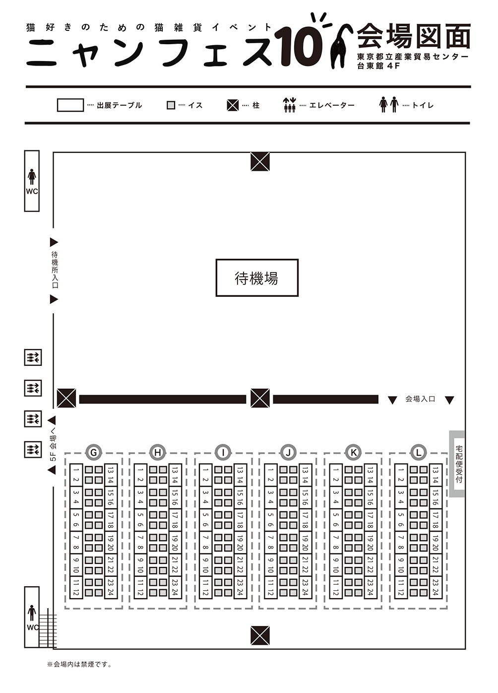 ニャンフェス10 創作活動 2019年10月12日 台風のため、当日のイベントは中止になりました。来られる予定だった方は、安全によろしくお願いします!------------------------------------------------------------「 ニャンフェス10 」に参加します!日付:2019年10月12日(土曜日)時間:11:00〜16:00まで ※会場:東京都産業貿易センター台東館 4F・5Fスペース:5F A-28出展名:サタカ ( ニャンフェス作家紹介ページ )※ ニャンフェスの入場の際、入場券(前売/当日 500円)の購入が必要になります。 11〜13時の入場の方は、事前に前売り券を購入してください。(4Fにて待機列場所があります) 当日券の方は、13時ごろからしか、入場できません。※※ ニャンフェスをいつも一緒に参加してる くろねこ屋さん は、お隣のA-27で参加してます^^!今回は4F・5Fと、2階分(1.5倍!)の会場がありますので、事前にチェックオススメです〜!!4Fの会場マップ 5Fの会場マップ(サタカのいる会場) 通常の5F会場マップ イラスト一覧へ戻る